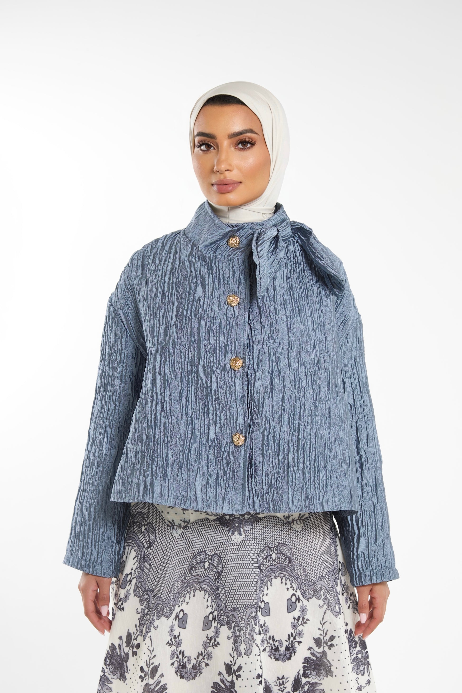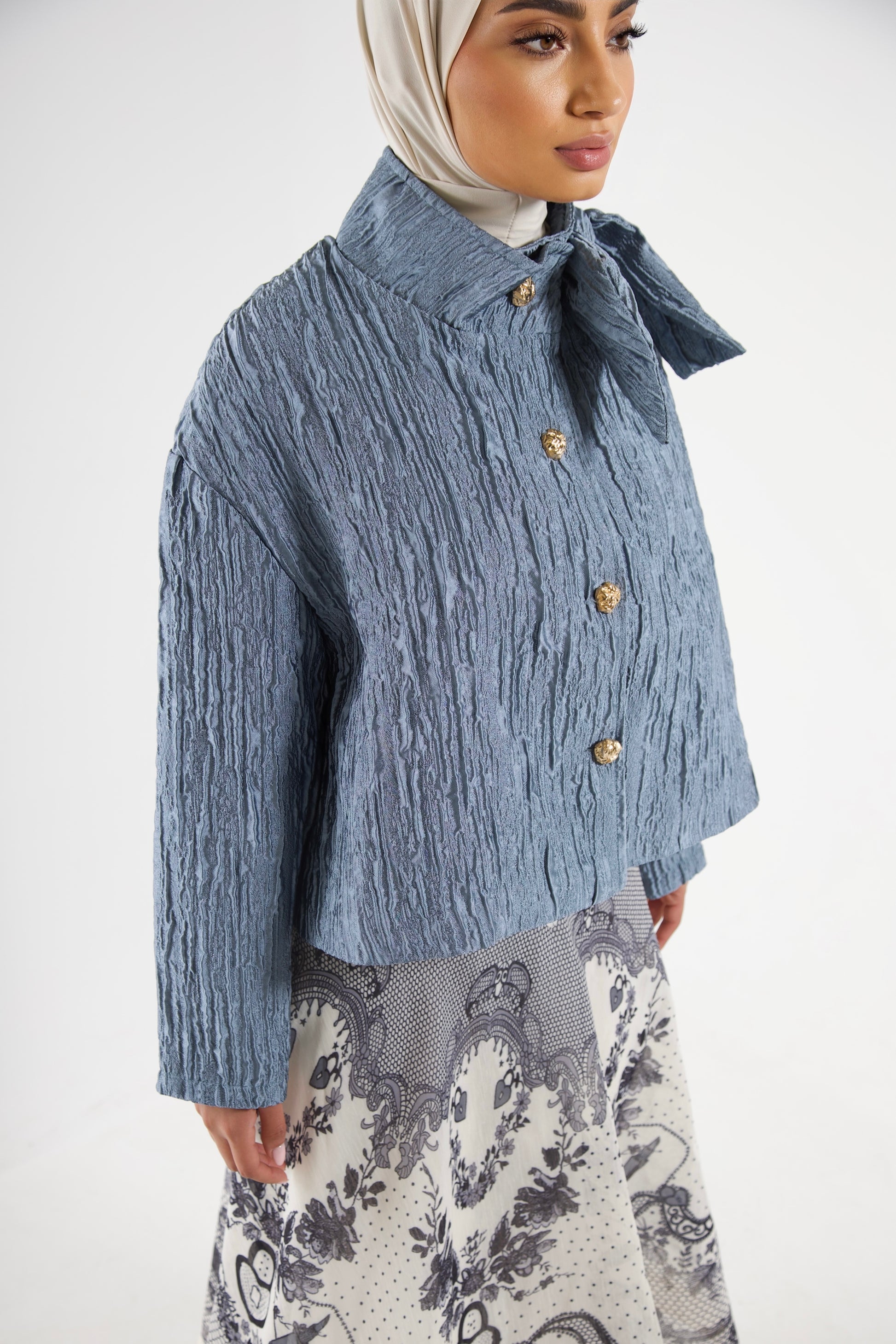 Structured Cropped Jacket With Bow