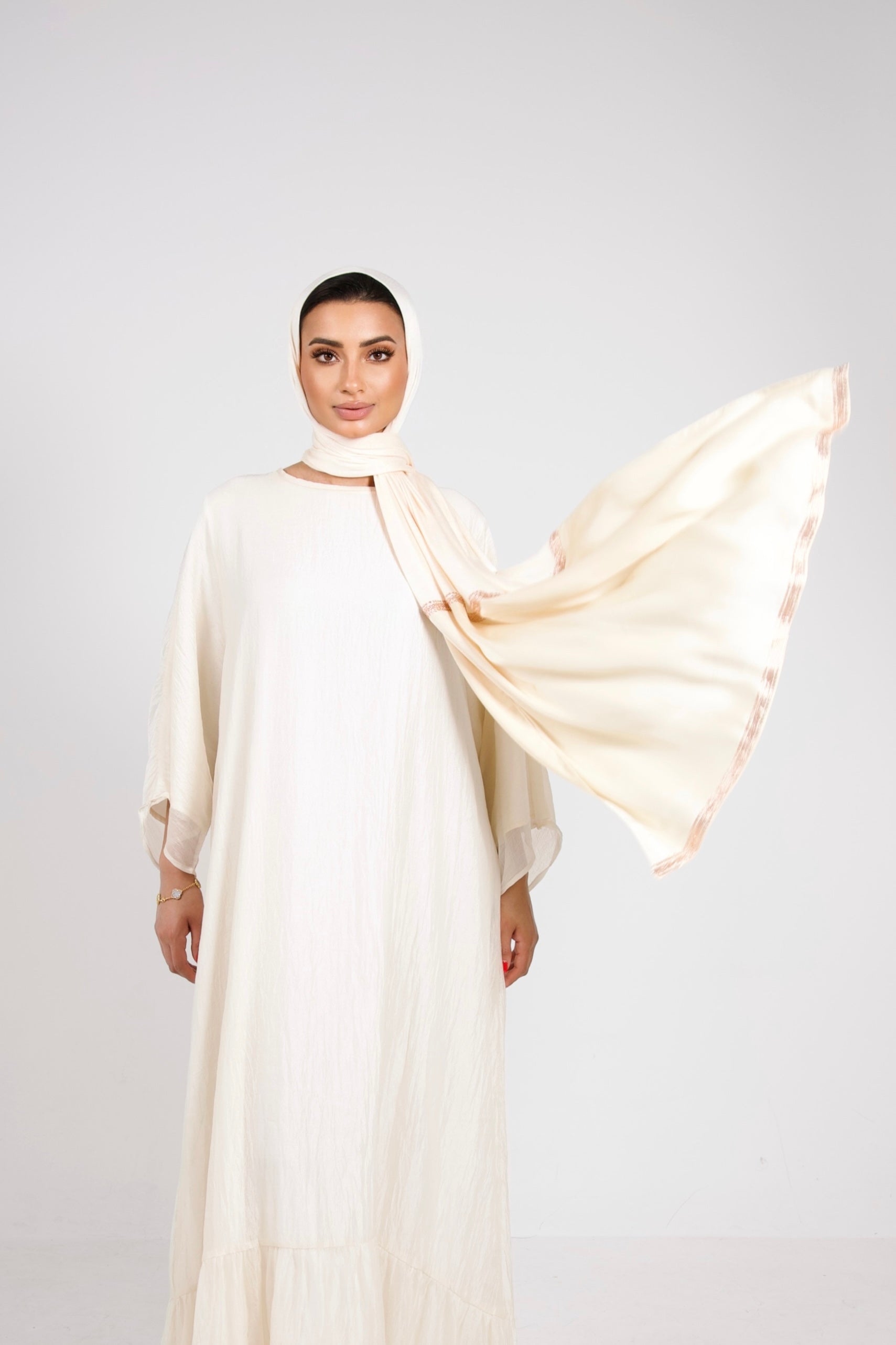 Our Dubai jersey satin scarves are effortlessly chic, soft and comfortable. One side of the scarf is with satin & lilac stones. The stretchy medium weight of jersey allows infinite styling possibilities while providing full coverage.