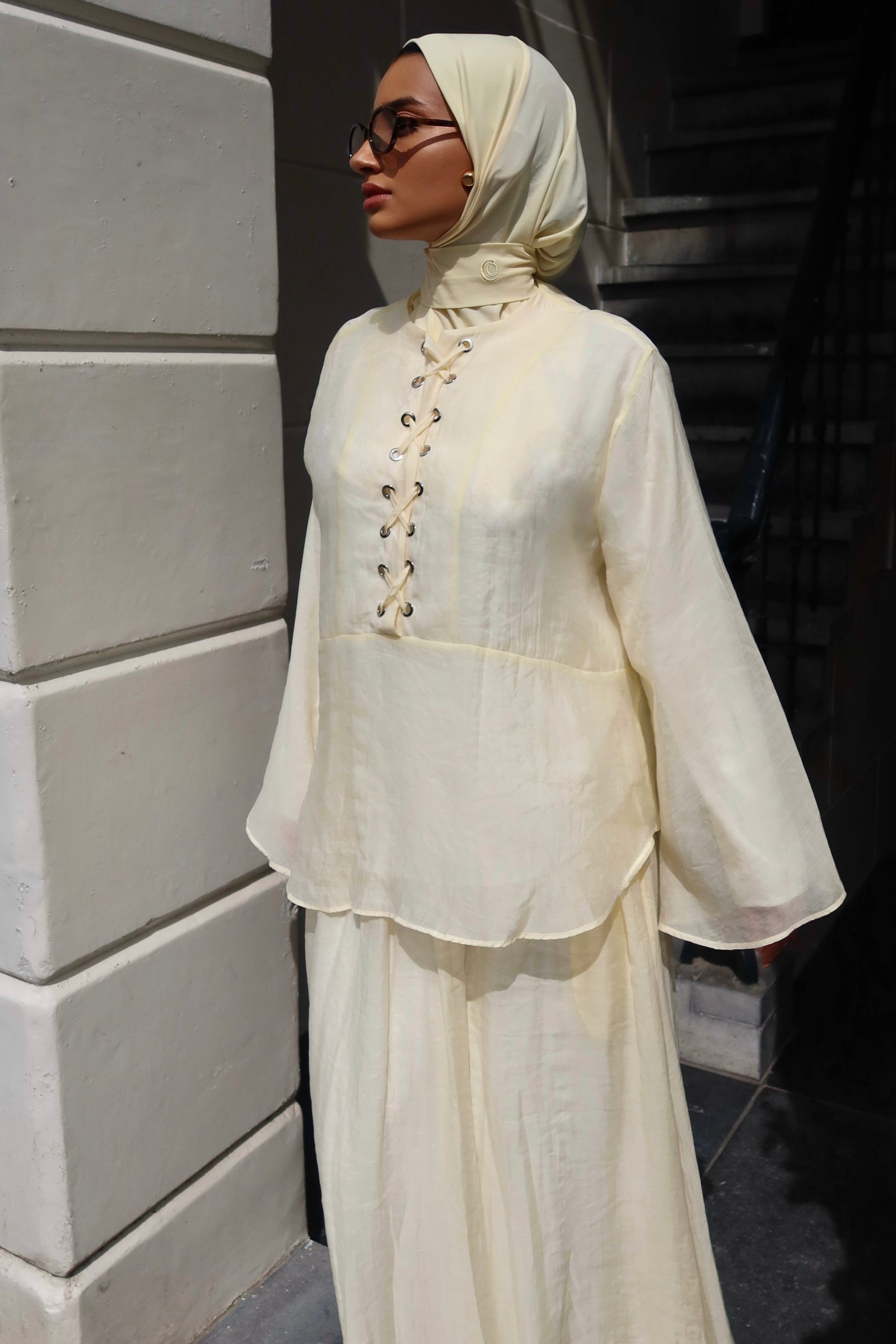 Light, airy, and fully lined for comfort and confidence, the Été Élégant Set captures the essence of refined summer dressing. This two-piece features a relaxed-fit blouse with delicate lace-up detailing and a flowing skirt that moves effortlessly with you. Crafted from soft chiffon in dreamy, elevated shades, it’s perfect for warm days, golden-hour dinners, and everything in between.