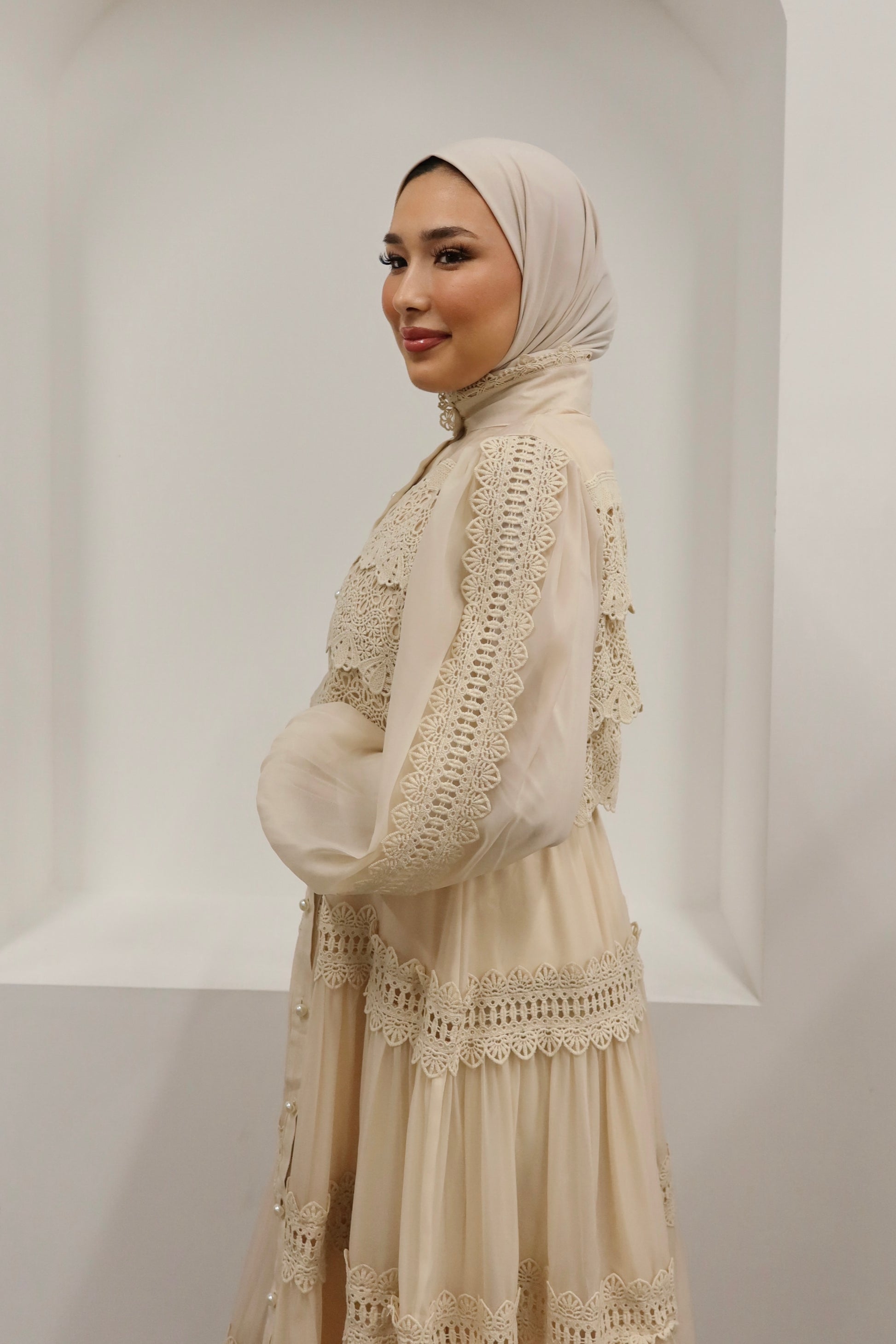 Indulge in timeless allure with our meticulously crafted dress, perfect for a vintage-themed wedding.