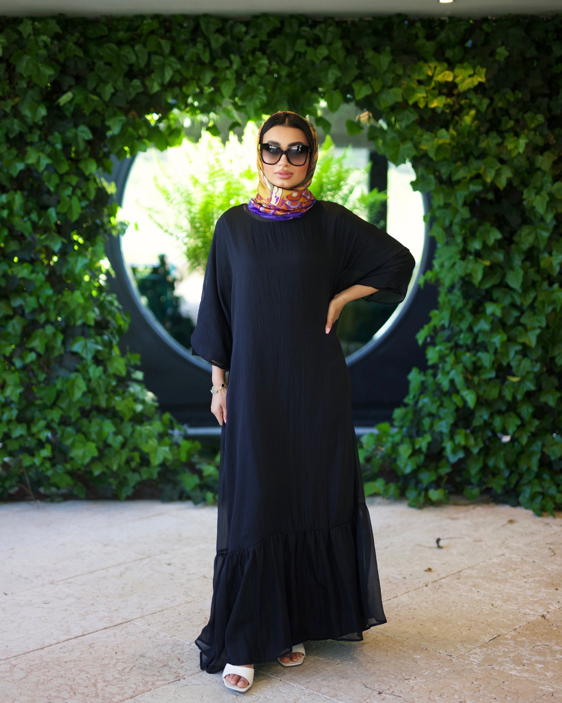 The Refind Dress features boat neck and beautiful sleeves, giving the outfit subtle but prominent details. The ruffles at the bottom of dress is beautifully cut and dashing, whilst maintaining a modest look. This dress is perfect for any occasion and will definitely leave a lasting impression. The Dress has also a slipdress.
