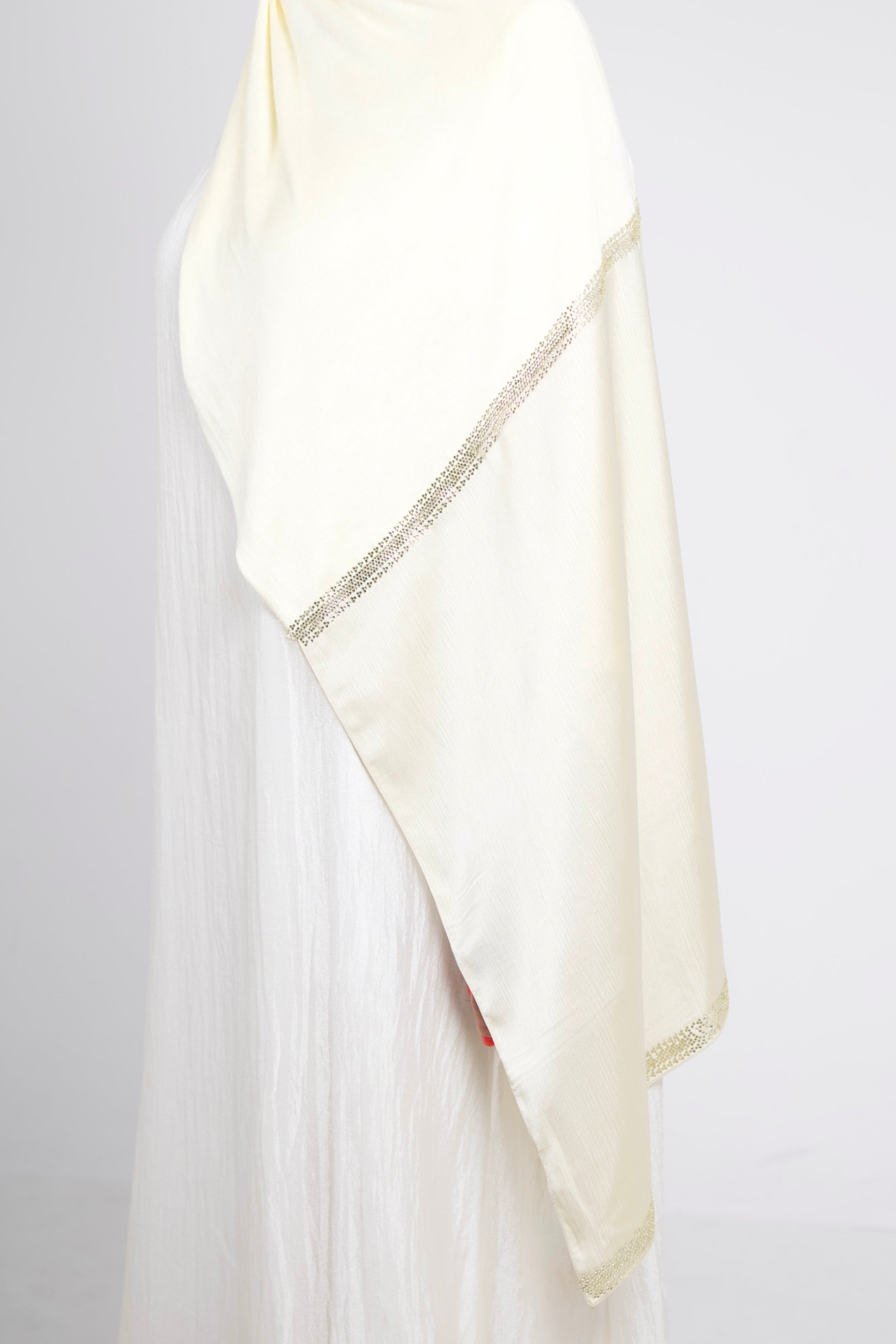 Our Dubai jersey satin scarves are effortlessly chic, soft and comfortable. One side of the scarf is with satin & purple stones. The stretchy medium weight of jersey allows infinite styling possibilities while providing full coverage.