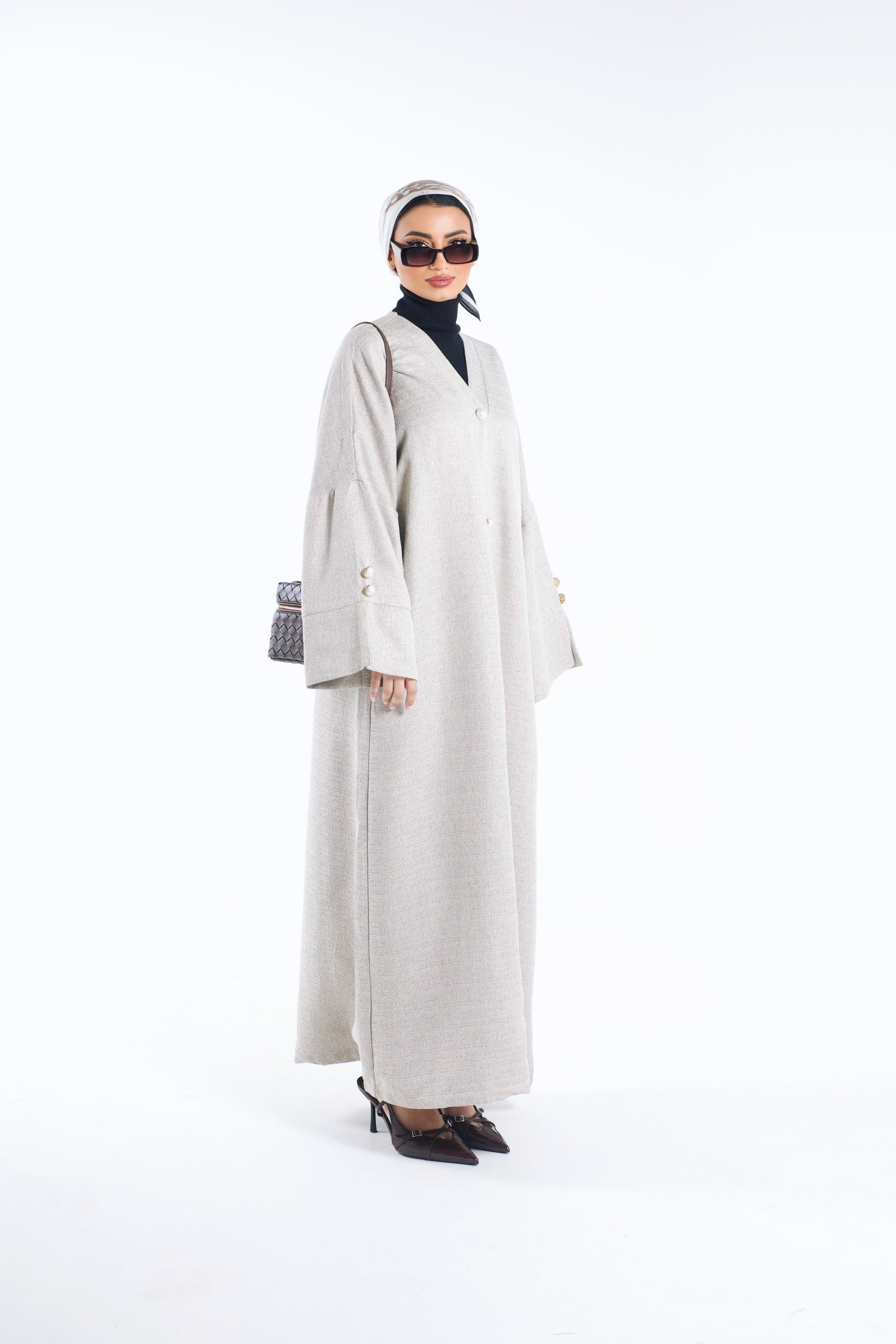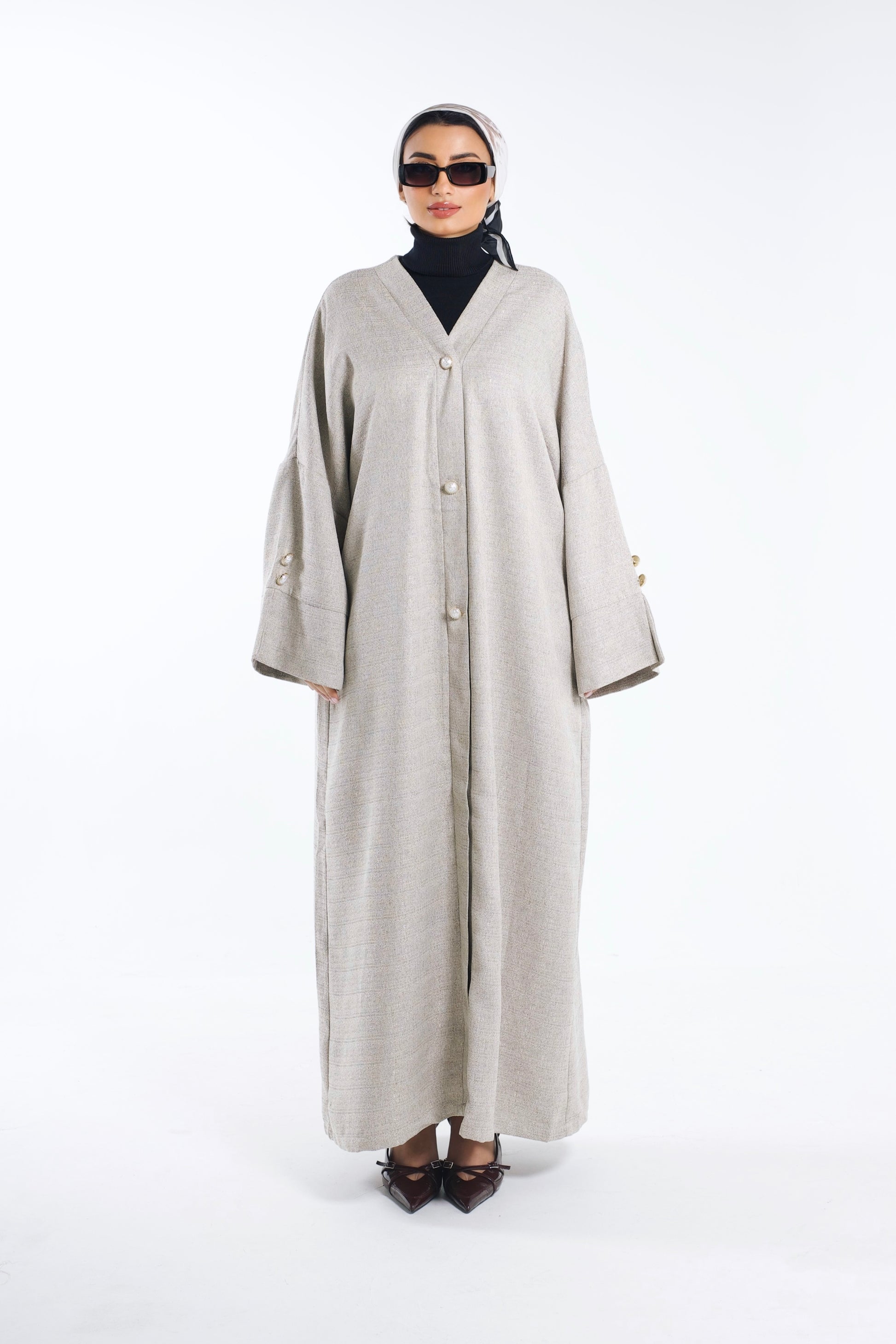 Tweed Kimono With Pearl Buttons Ecru